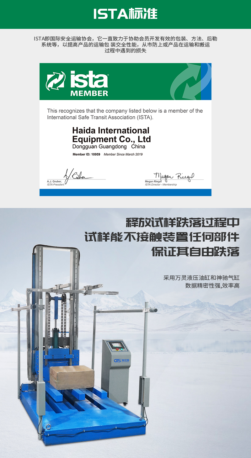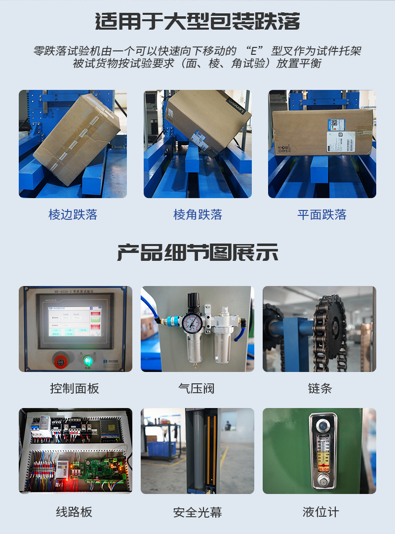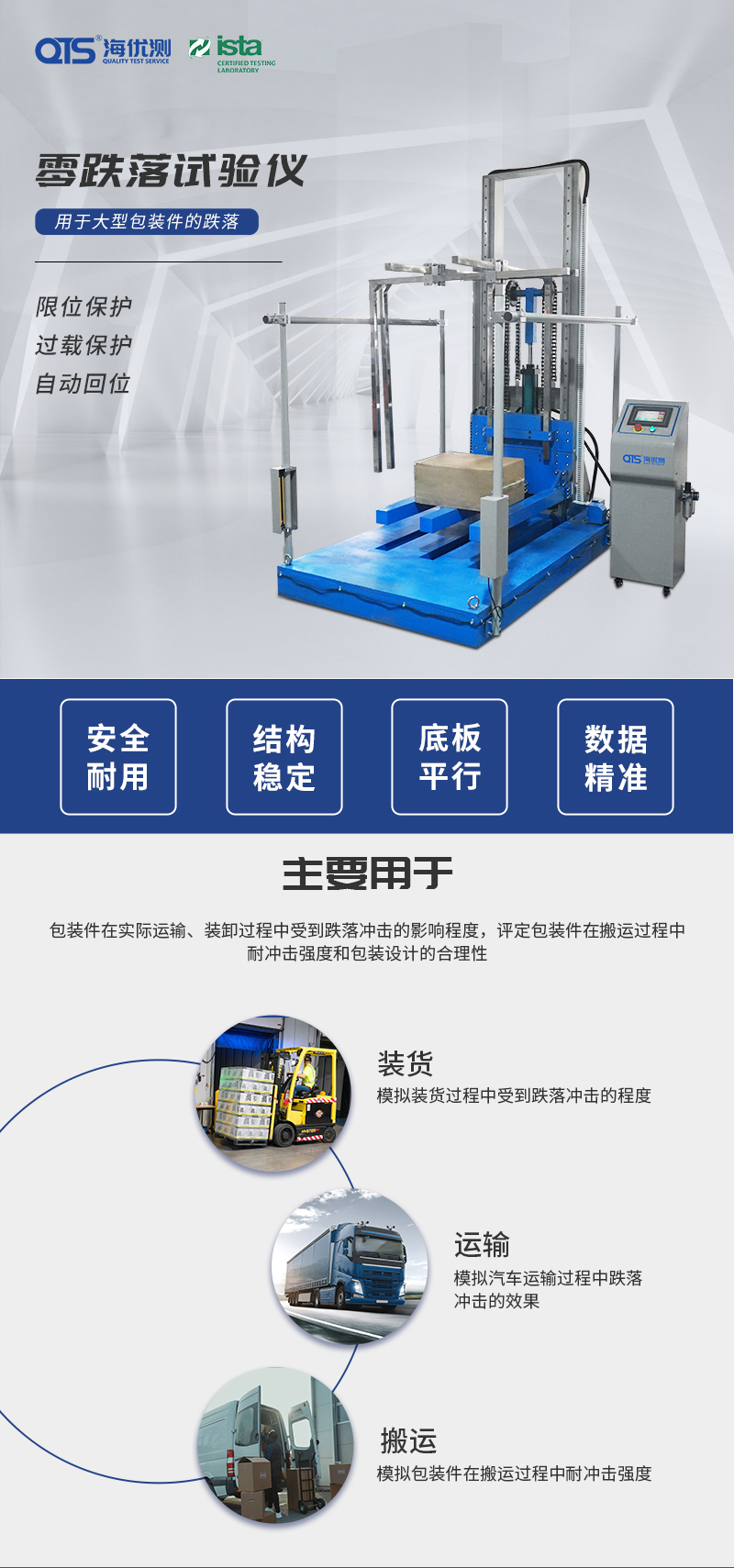 零跌落試驗機(jī)主要用于考核包裝件在實際運輸,裝卸過程中受到跌落沖擊的影響程度,評定包裝在搬運過程中耐沖擊強(qiáng)度和包裝設(shè)計的合理性。
