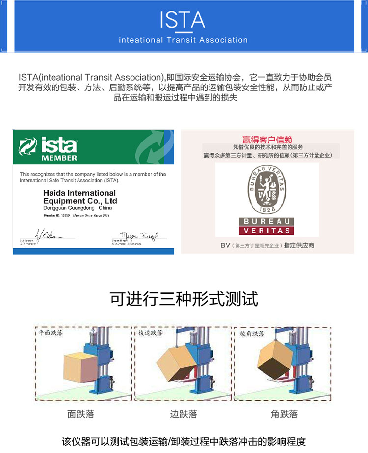單翼(單臂)跌落試驗機用于測試產品包裝受到墜落之受損情況,及評估運輸搬運過程時耐沖擊強度。可對包裝件的面、角、棱作自由跌落試驗,配備數顯高度顯示儀及采用譯碼器進行高度跟蹤,從而能準確的給出產品跌落高度,與預設跌落高度誤差不超過2%或10mm。
