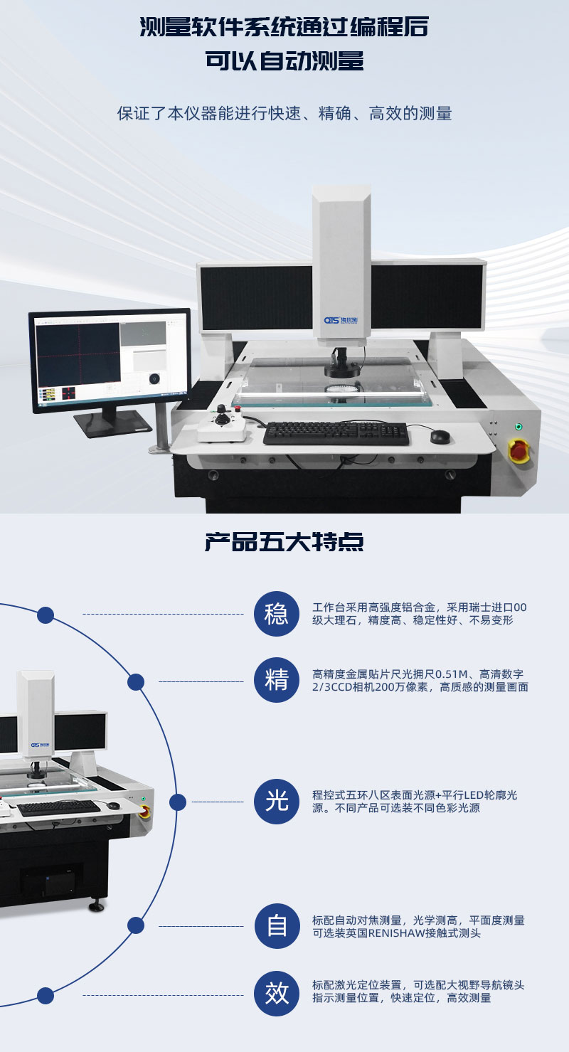 2.5次元自動影像測量儀廣泛應用于飛機小零件,航天研究所,航天標準件,軍工異形小件、計量院,導電粒子、PCB板、TP、TFT、手機配件、皿配件、模具產(chǎn)品、刀具、齒輪、五金產(chǎn)品、端子、螺絲、彈簧、電子產(chǎn)品、連接器、鐘表、電線、沖壓產(chǎn)品、塑膠產(chǎn)品、汽車配件、醫(yī)療器械、計量院、高等院校等領域。