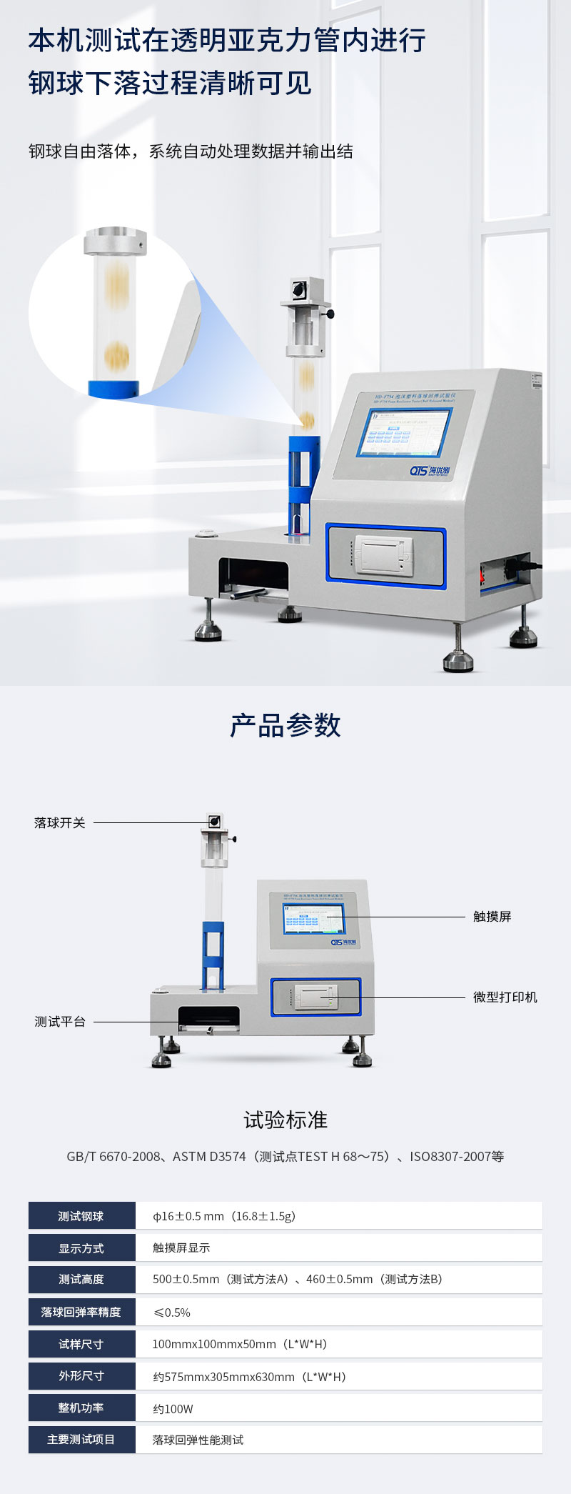 3.落球回彈率精度: <0.5%