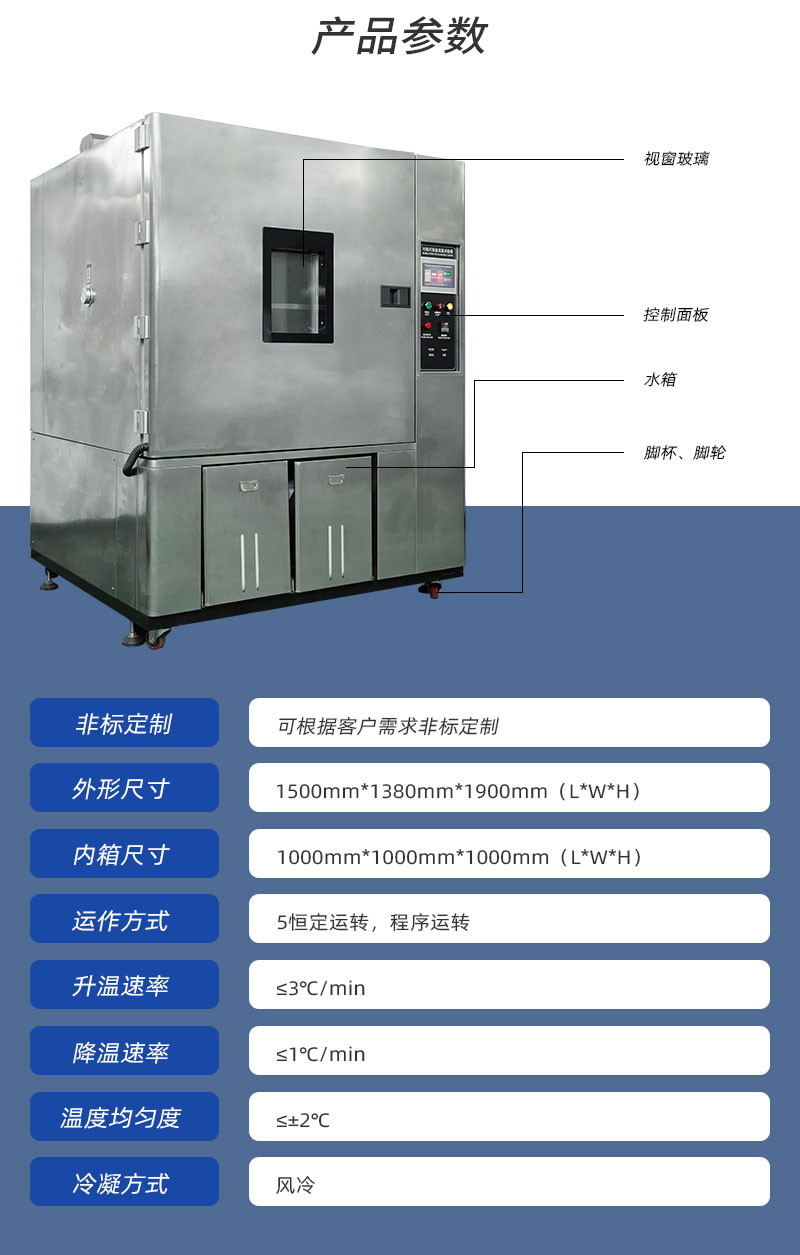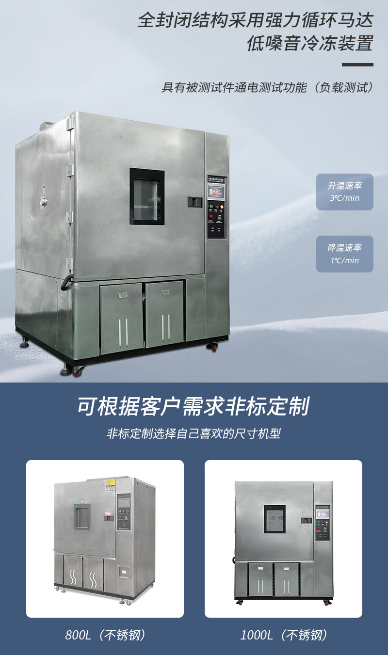 適用于高溫、低溫或濕熱環境;或高溫、低溫、濕熱交變環境下,檢驗材料、配件或儀器設備耐高溫、耐寒、耐濕熱性能及可能造成的損壞壽命縮減等。