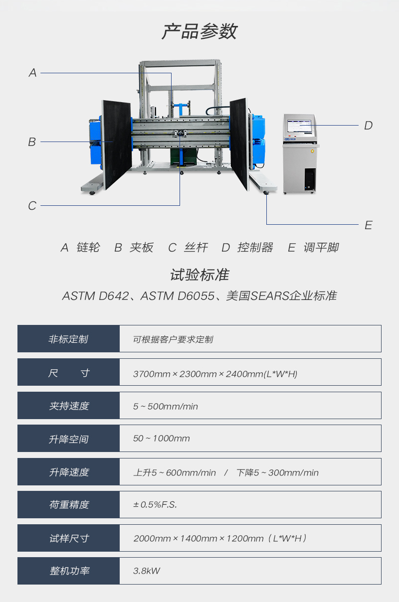 評估包裝件耐夾強度,適用于廚具、家私、家電、玩具等成品包裝,尤其適用于美國西爾斯SEARS所要求之包裝件抗夾持強度測試。