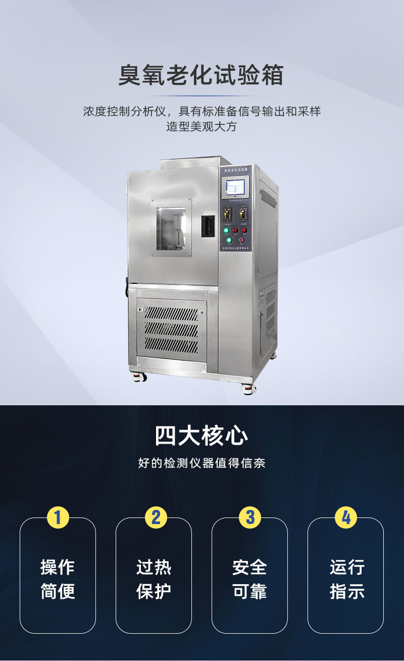 臭氧老化箱模擬和強化大氣中的臭氧條件,在短時間內(nèi)獲得近似于實際使用的或重現(xiàn)的試驗結(jié)果,研究臭氧對聚合物材料及其制品(橡膠)的作用規(guī)律。