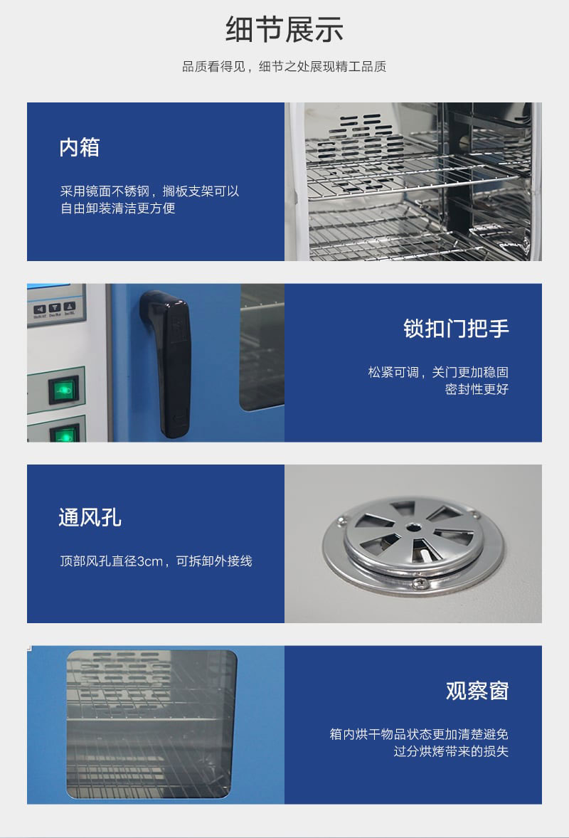 6、干燥箱材質:內膽為碳鋼/不銹鋼,外箱為鋼板噴涂表面