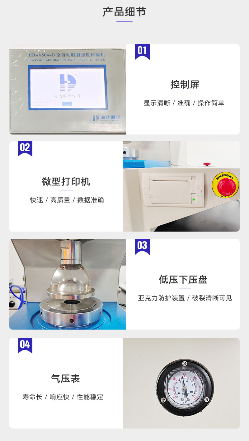 主要測試項目:紙板耐破強度測試、紙張耐破強度測試(選配)