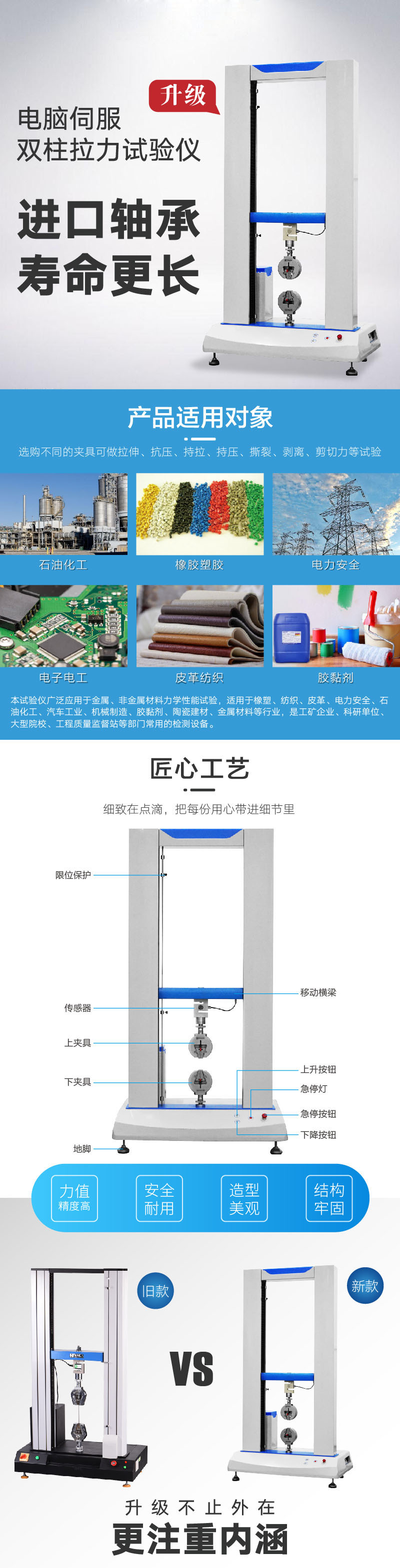 電腦伺服雙柱拉力機(jī)廣泛應(yīng)用于各類五金、金屬、橡塑料、鞋業(yè)、皮革、服裝、紡織、絕緣體、電線電纜、端子等各類材料,測(cè)試其拉伸、撕裂、剝離、抗壓、彎曲抗剪力、三點(diǎn)抗折……等各項(xiàng)